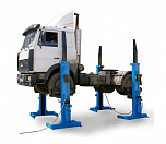 г/п. 10 тонн. Подкатной. Электромеханический. Четырёхстоечный. Для ремонта грузовых автомобилей отечественного и импортного производства и автобусов на любой ровной площадке. Подъем осуществляется за колёса, диаметр колёсных дисков 20-22 дюйма. Поставляется в 2 вариантах Стандарт (в помещение) и ТЗ (Для эксплуатации на улице).