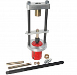 Прост в применении и эффективен при проведении ремонтных работ оси. Разработан для демонтажа шкворней и тормозных валов грузовых автомобилей. Усилие 20 тонн гидравлического цилиндра позволяет демонтировать шкворни диаметром до 1 1/4".