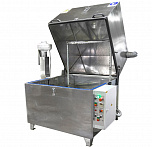 Рабочее пространство: 1200x700x500 мм. Объем моющего бака 125л. Масса детали до 120 кг. Итальянский насос! Сделано в России. Ручная мойка для деталей ТС1200РМ позволяет максимально качественно обработать поверхности со сложной геометрией, глухие отверстия и укомплектована надежным насосом, качественными фитингами, ТЭНами из нержавеющей стали, европейской электрикой. Корпус изделия выполнен из стали AISI430, толщиной 2,0 мм.