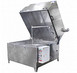 Рабочее пространство: 1000x600x400 мм, объем моющего бака 100л., масса детали до 90 кг. Итальянский насос! Сделано в России. Ручная мойка для деталей ТС1000 РМ позволяет максимально качественно обработать поверхности со сложной геометрией, глухие отверстия и укомплектована надежным насосом, качественными фитингами, ТЭНами из нержавеющей стали, европейской электрикой. Корпус изделия выполнен из стали AISI430, толщиной 2,0 мм.