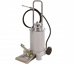 Нагнетатель консистентной (пластичной) смазки. Плунжерный. Ножной привод - позволяет за два-три качка ногой смазывать большинство шарнирных соединений. Емкость бака для смазки 13 кг. Давление смазки 296-345 Атм. Длина шланга - 4м. Производительностью 300 г/мин. Габариты: 510X310X685 мм, вес 18 кг.