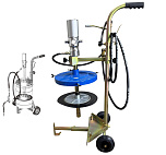 Нагнетатель предназначен для раздачи густой смазки из бочек объемом 190 л. Состоит из 2-х независимых и раздельных насосных систем, что предотвращает попадание отработанной влаги компрессора в емкость с перекачиваемым маслом. Длина шланга: 6 м. Давление смазки: 180-405 бар. Коэффициент передачи давления: 5:1. Производительность: 30 см³/с. Длина раздаточного шланга: 305 см. Вес: 15,5 кг.
