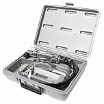 Ножовка пневматическая для резки различных материалов. Скорость вращения: 3500 об/мин. Ширина пропила: 4.5 мм. Размер воздушного штуцера: 1/4”. Масса инструмента: 920 гр. Длина: 190 мм. Рабочее давление : 90PSI Расход воздуха: 4 CFM Толщина резки: - Толщина среза: железо 2.0 мм., нержавеющая сталь 1.5 мм. Габаритные размеры: 210/170/50 мм. (Д/Ш/В) Вес: 1000 гр.