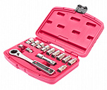 Набор инструмента в кейсе 23 предмета предназначен для ремонта автомобилей на СТО, мотоциклов, садовой и другой техники. В наборе: головки 1/4", головки с насадкой TORX 1/4", удлинитель 1/4", вороток с шарниром 1/4", вороток с плавающей головкой 1/4", трещотка 1/4" и карданный переходник 1/4".
