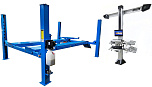Комплект четырехстоечный подъемник для сход-развала ВСЕХ авто г/п.-4т. с ручной траверсой. Гарантия 2года. В комплекте: анкерные болты 16шт. + противооткатные ограничители 2шт. + противооткатные упоры 2шт. Для любых стендов сход-развал. ВАЖНО!!! ДЛИНА ПЛАТФОРМЫ - 4130мм. — это позволяет прокатывать авто на подъёмнике. Подъём 1850мм, Между колоннами 2775 мм. Усиленный — 960кг металла. + T 7202 TAB Стенд сход-развал 3D. 2 неподвижные видеокамеры. Напольный. Серия Basic. Для работы на яме или подъемнике. Высокая точность и скорость работы-40 кадров в секунду. База данных 65 000 авто.