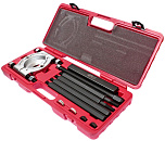 Съемные опоры легко устанавливаются в нужном положении для извлечения ступицы, где окружность болтового крепления не превышает 190,2 мм. Также применяется для снятия запрессованных тормозных барабанов. Универсальная конструкция позволяет использовать приспособление для большинства марок автомобилей.