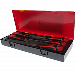 Ключи из прочной хром-ванадиевой стали с зеркальной полировкой. Обладают уникальным 72-зубцовым механизмом, обеспечивающим высокий крутящий момент. Угол перемещения механизма в 5° позволяет использовать инструменты в узких и труднодоступных местах. Размеры в комплекте: 8, 10, 12, 14 мм.