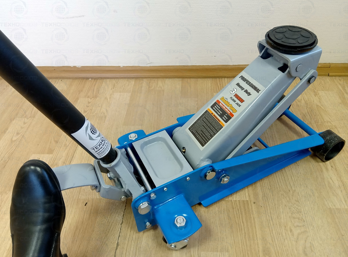 Двухплунжерный механизм быстрого подъема. С педалью. Высота подъема 120-460 мм. Гидравлический подкатной домкрат грузоподъемность 3,0 т. Домкрат рекомендуется к применению в шиномонтажных мастерских и автосервисах. Цвет темно-синий.