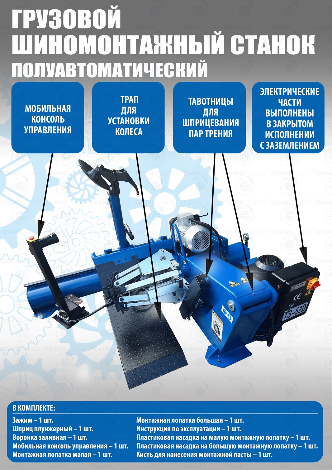 Комплект TS-52D Шиномонтажный стенд грузовой c удлинителями 14-52+TS-850 Балансировочный станок 380V