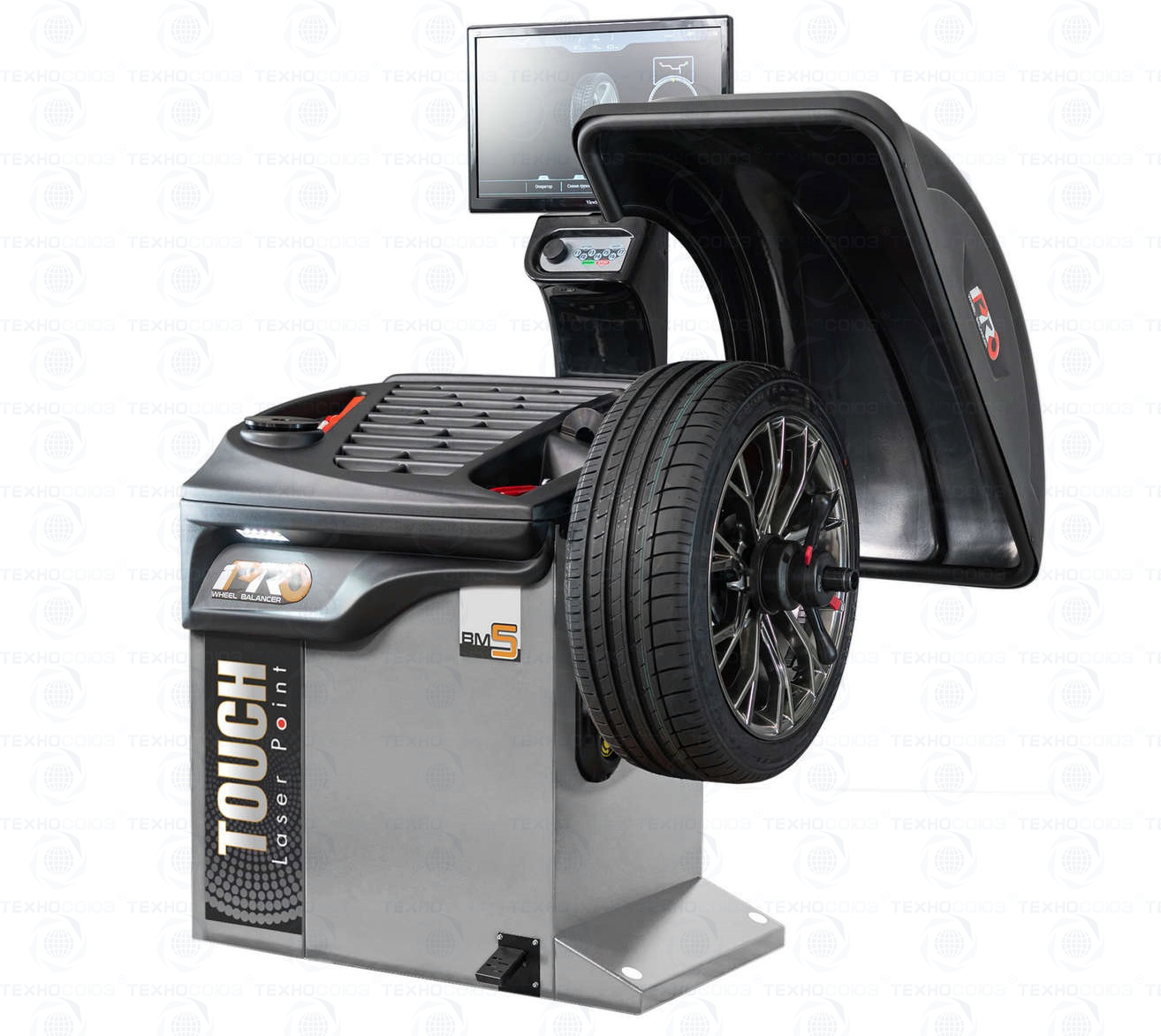 Стенд балансировочный модель iPRO BM5. Автоматический. Цветной монитор 24’’ для графического отображения всех процессов и настроек. Микрокомпьютер с мощным процессором. Высокая точность измерений. ОС Android. Качественная 3D-графика. Возможность обновления ПО. Эргономика и удобство использования. Измерение ширины колеса производится ультразвуковым сенсором. Электромеханический тормоз. Автоматический доворот колеса до места установки груза. Лазерным линейный указатель. Возможность установки груза линейкой. Установка грузов на «6 часов» и «12 часов». Диаметр обода балансируемого колеса 12-28". Вал Ø - 40мм.