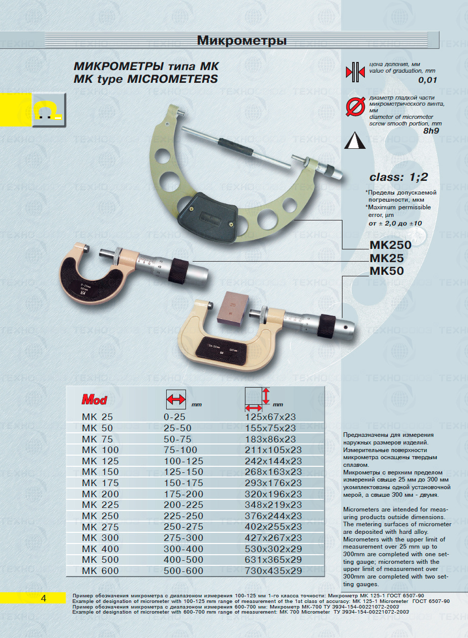 Цена деления 0,01 мм. Диапазон измерения от 175-200 мм. Для измерения наружных размеров изделий. Измерительные поверхности микрометра оснащены твердым сплавом. Микрометры укомплектованы одной установочной мерой. Класса точности 2. ГОСТ 6507-90. Поставляется в двух вариантах с поверкой и без поверки!