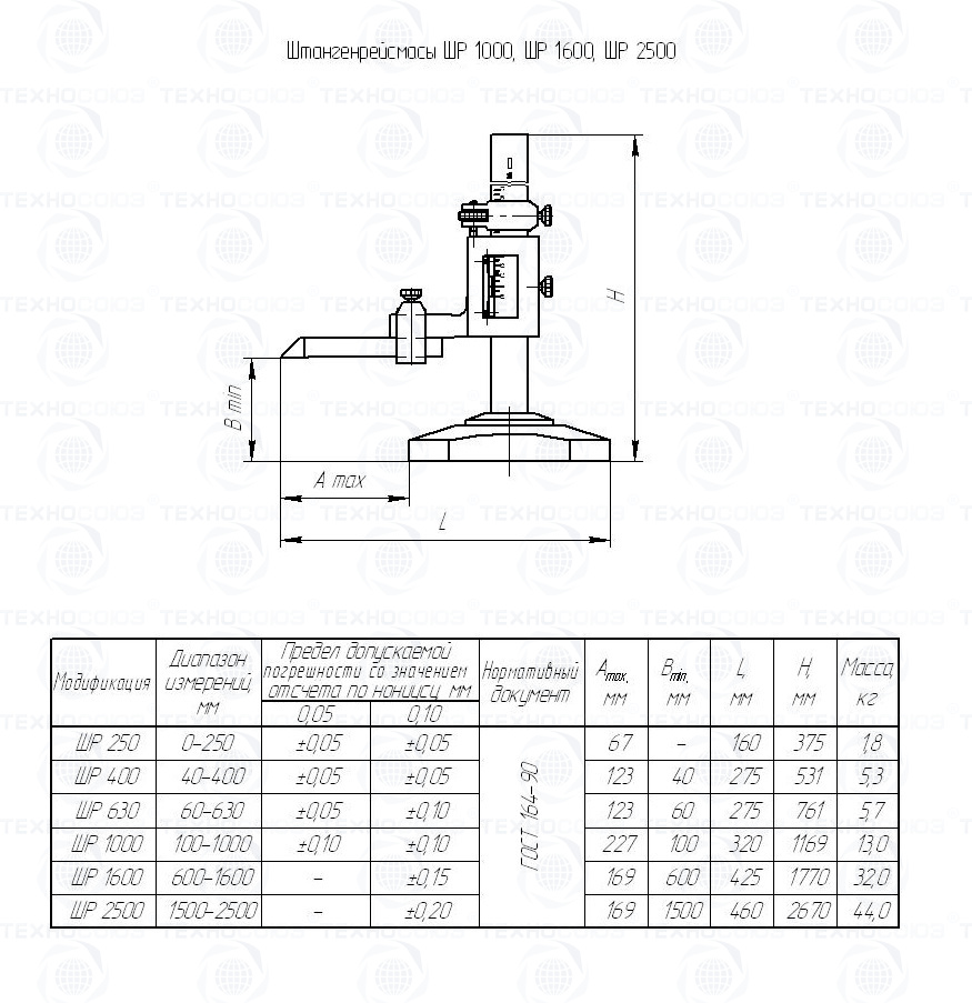 Цена деления 0,10 мм. Диапазон измерения от 100-1000 мм. Предназначены для измерения и разметки размеров. Вдоль штанги перемещается рамка, к которой прикреплена разметочная или измерительная ножки. Разметочная ножка оснащена твердым сплавом. Рамка имеет нониус, а для облегчения установки на требуемый размер снабжена микрометрической подачей. Основные детали штангенрейсмаса хромированы. ГОСТ 164-90. Поставляется в двух вариантах с поверкой и без поверки!