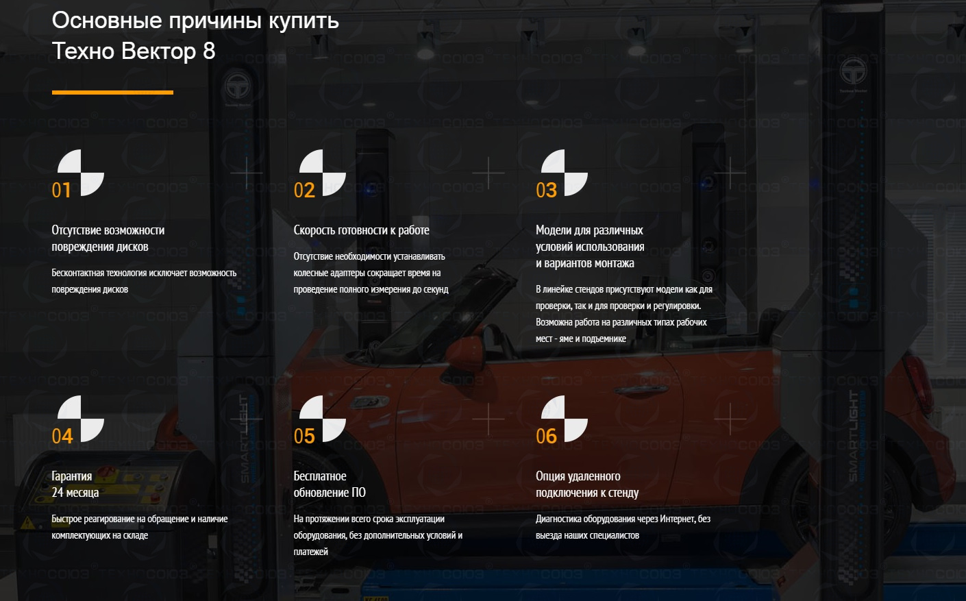 Основные преимущества Техно Вектор T8214 VELOX бесконтактный стенд сход развал: