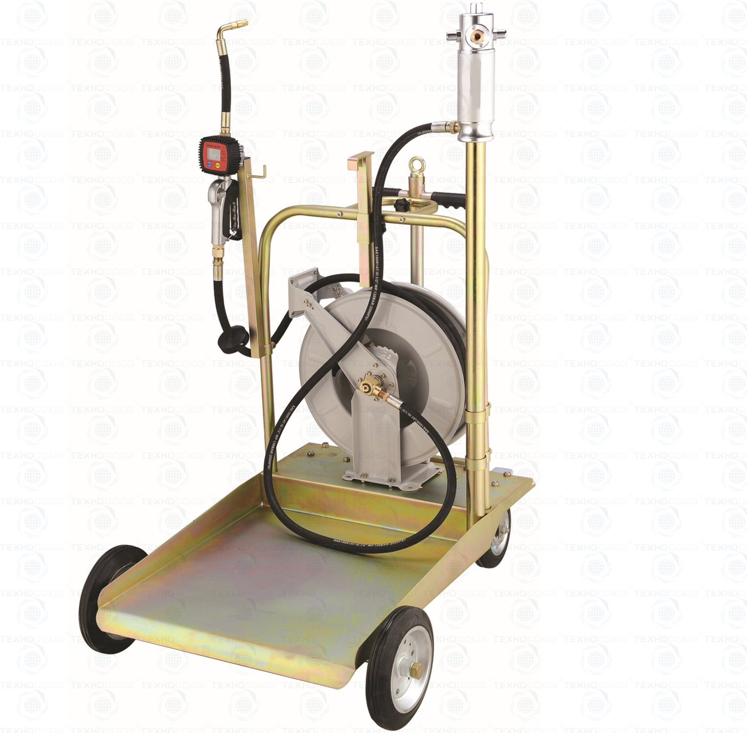 Для бочек 200л. Комплект для раздачи масла включает тележку, автоматическую катушку, пневматический насос для масла и техжидкостей 5:1 производительность 14л/мин, шланг 4 м, раздаточный пистолет с электронным счетчиком. Колёса 2 прямых + 2 поворотных. Масса: 74,5 кг. ДЛЯ ГУСТЫХ (пластичных) СМАЗОК НЕ ПРИМЕНЯЕТСЯ!!!