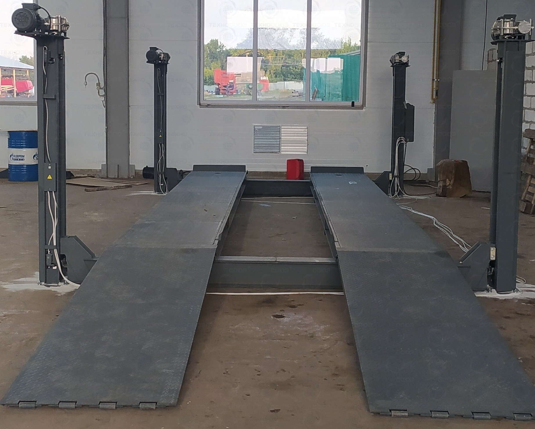 Описание конструкции подъемника платформенного четырехстоечного ПЛ-15: