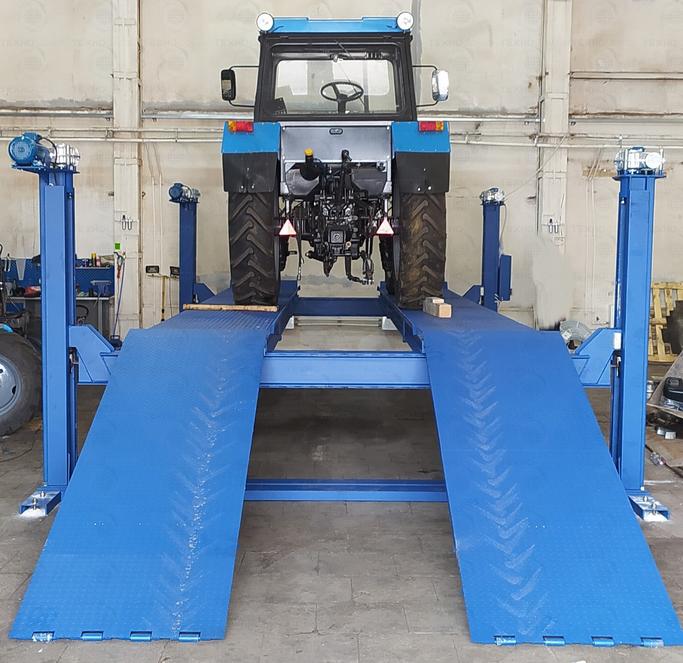 г/п. 15 тонн. Четырехстоечный. Электромеханический. Для ремонта грузовых автомобилей отечественного и импортного производства и автобусов на любой ровной площадке. и автобусов на любой ровной площадке. Привод червячный редуктор, с концевыми выключателями нажимного действия, ограничивающими ход каретки. Рабочие гайки повышенной прочности и износостойкости. Многоуровневая система безопасности. По отдельному заказу комплектуется установочными рамами. Поставляется в 2 вариантах Стандарт (в помещение) и ТЗ (Для эксплуатации на улице).